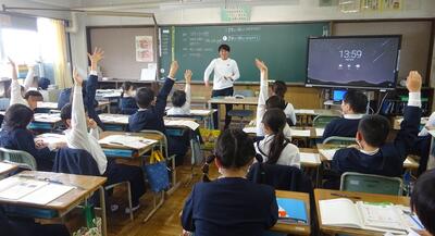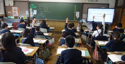 5年2組は、算数「整数と小数」の学習に取り組んでいました。意欲的な挙手がステキです。