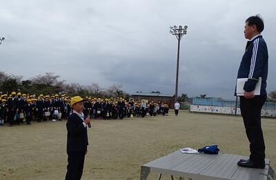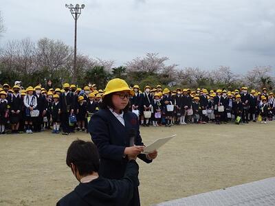 最後に6年生代表のあいさつで一斉下校を行いました。