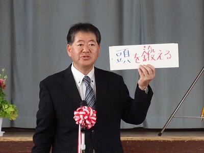 続いて始業式が行われました。校長先生からは、「頭・心・体を鍛えよう」というお話がありました。