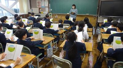 3年1組は、音読をしていました。本の持ち方が素敵です。