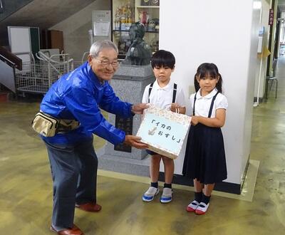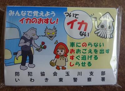 防犯協会連合会玉川支部から本校の1年生に「いかのおすし」ティッシュが贈呈されました。