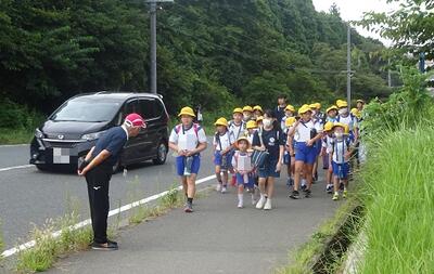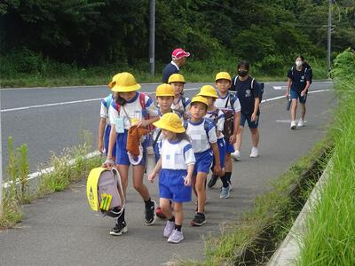 6年生の班長さんが、つらそうにしていた低学年のランドセルを持って坂道をあがってきていました。素敵な姿ですね。