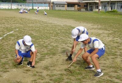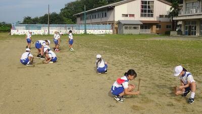 校庭に行くと、体育委員会が校庭の草むしりをしてくれていました。素敵な姿がたくさん見られました。