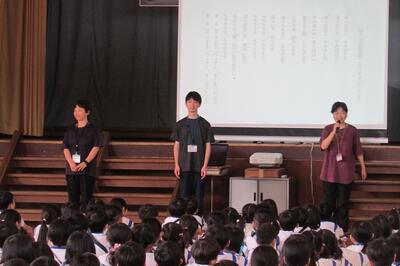 文化庁舞台芸術等総合支援事業の一環として「劇団たんぽぽ」による公演を本校で行ってもらえることになりました。嬉しいかぎりです。公演日は11月7日なのですが、事前練習(ワークショップ)を本日全校生で行いました。