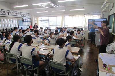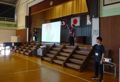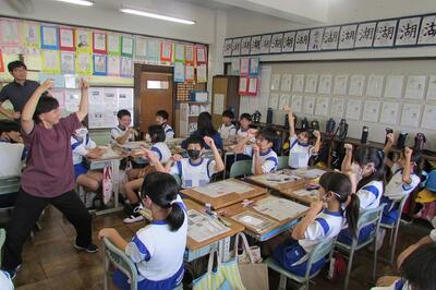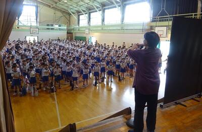 当日公演で行うエンディングソングを手話つきで習いました。子どもたちも意欲的に練習に励みました。