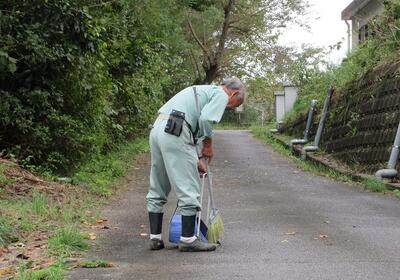 子どもの登校時には、すでに用務員さんが落ち葉掃きをしてくれていました。