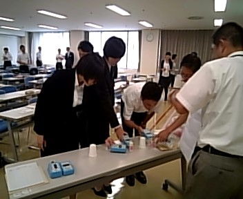 午後の最初は、「放射線等に関する授業の進め方」についての講義・演習を角田指導主事が行いました。前半は、放射線教育をするに当たっての基礎的なことについて、後半は、実際に放射線測定器の使い方を「はかるくん」をつかっての測定実験などを行いました。