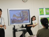 「ALTの効果的な活動」「自作教材や絵本教材を使った授業の実際についての演習」など受講した先生方は、児童になったつもりで楽しく活動していました。