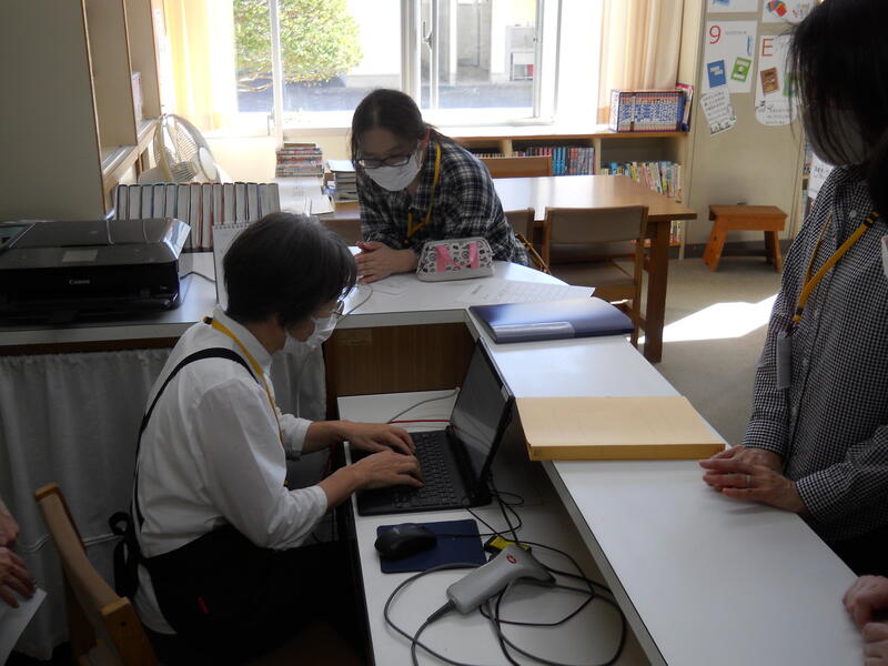 豊間小学校での研修の様子です。研修テーマは「ベテランの先輩から技を学ぼう」です。図書の廃棄の仕方について先輩のやり方を学び、パソコンを操作して確認しました。