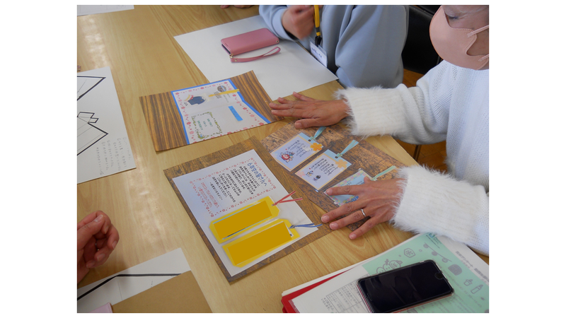 卒業式に向けて、学校図書館から卒業する児童生徒への贈り物について、それぞれの学校司書がアイディアを出し合っていました。