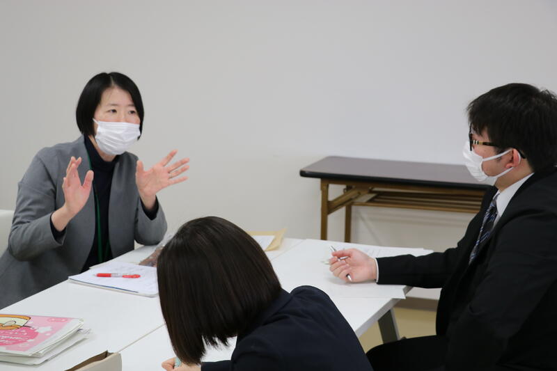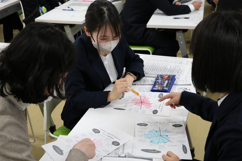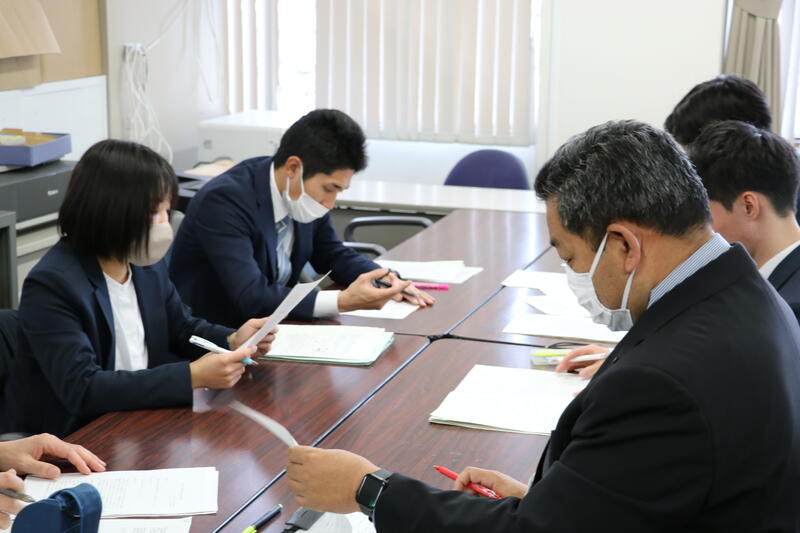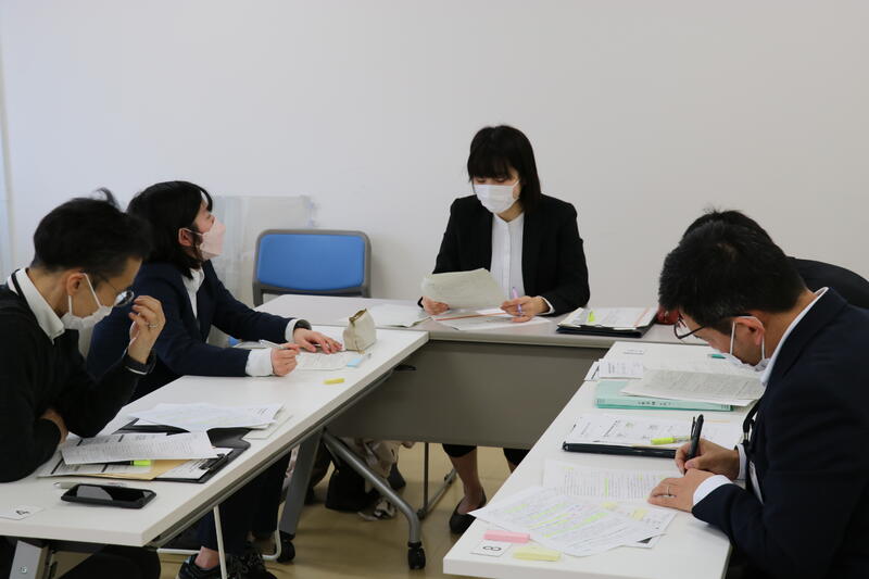 はじめに、小グループに分かれて研修者が1年間かけて行ってきた「課題研究」の成果と課題についての発表・協議を行いました。小グループのメンバーは担当学年や教科が違いましたが、共通の課題があったり新たな視点が得られたりと、有意義な協議になりました。