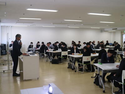 いわき市教育委員会学校教育課指導主事より、今年度の部活動運営における指導上の留意点について講義がありました。児童生徒の健康面、先生方の健康面を考慮し、休養日を必ず設けることや、いわき市の部活動運営方針の確認などを行いました。