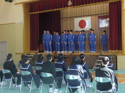 本日(3/2)6校時に、3年生を送る会が行われました。在校生の代表から感謝の気持ちの挨拶があり、その後に1・2年生からの感謝披露がありました。