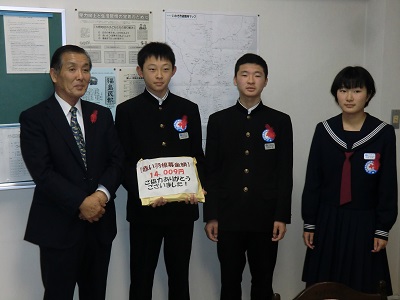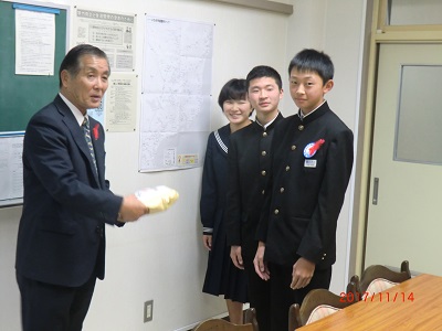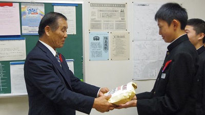 今日は四倉地区行政嘱託員(区長)協議会会長の公平和俊さんが来校され、集まった募金を贈呈しました。