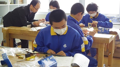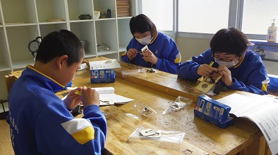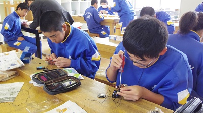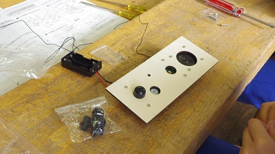なんだか真剣な表情で、片手に基板、片手にドライバーを持っています。
