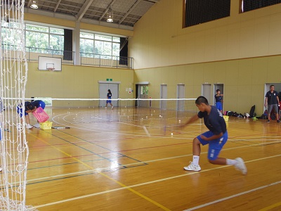 屋内でできる練習メニューは限られますが、集中して取り組んでいます。