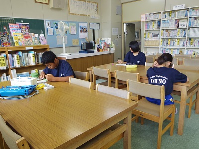コンクールに向け、標語や俳句を作る人、絵はがきを仕上げる人と、それぞれの活動に集中していました。