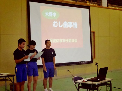 はじめは保健・給食常任委員である3年生3名による大野中「虫歯事情」