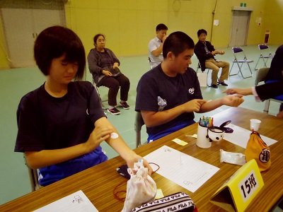 佐藤さんから染め出し液を受け取って・・・