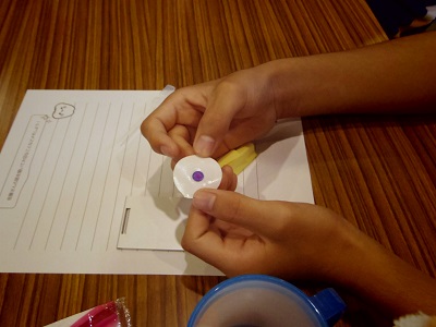 「垂らしたら、青い部分にカバーシールを貼って・・・」