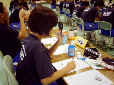 塗りおえたら、染め出し液が赤く残っている部分をワークシートに記録していきます。
