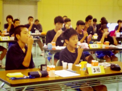 本校生徒のう歯率を聞いて、子どもたちの間にちょっとどよめきが走りました。