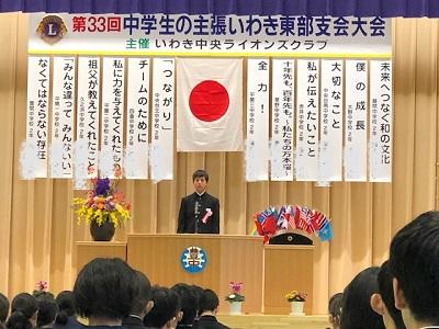 堂々と発表できました!! ~中学生の主張いわき東部支会大会~
