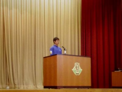 大きな緊張もなく、豊間中生の前で堂々と発表しました。