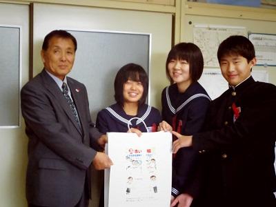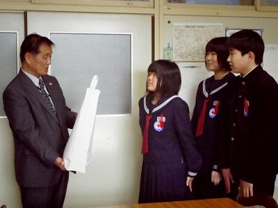 委員長と3年生委員が代表で、四倉社会福祉協議会長にお渡ししました。