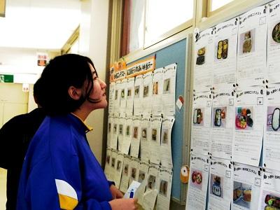 2階の廊下に展示されたお弁当の写真やコメントを参考に投票します。