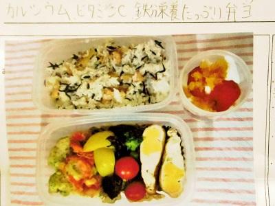 「カルシウム、ビタミンC,鉄分栄養たっぷり弁当」
