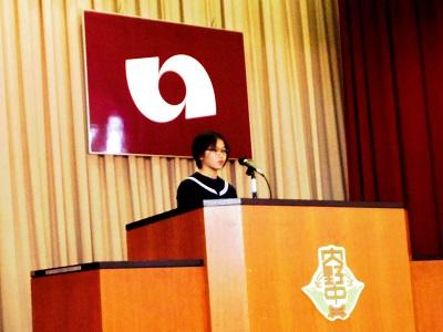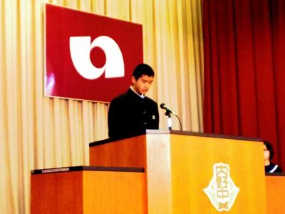 最後に「受験勉強などで悩むことがあっても、みんなで助け合っていけばきっと、最後、笑顔で卒業できると思う」と述べ、先生方やクラスメイト、後輩によろしくお願いしますと言った3年生。