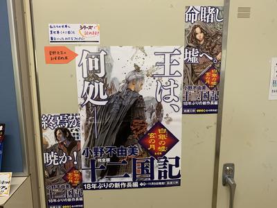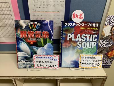 2019年12月5日 15時22分5日(木)、図書室の前には、新着本の展示がされていました。また、国語科の先生が昼の放送で紹介した小説本のポスターが掲示されていました。