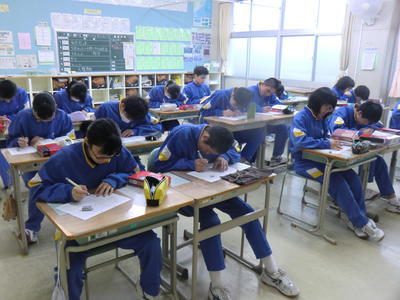 今日の課題は、東京オリンピックに関するコラムを読んで、「2020年東京五輪で、マラソン・競歩の試合会場を札幌に変更することについて、賛否を明確にした上で、考えたことを書く」でした。どの学年の生徒も、時間内に書き終えようと懸命に原稿用紙と向き合っていました。今週中には添削しコメントを入れて、一人一人に返却する予定です。