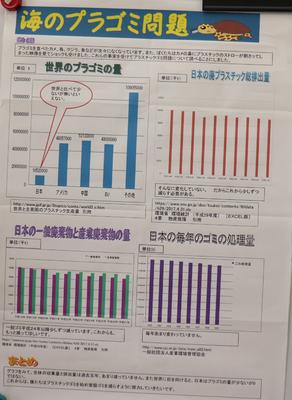 海のプラスチックゴミについて調べたことをグラフにまとめた作品です。