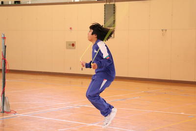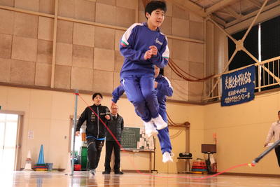 種目跳びでは、中学生は“前二重跳び”、小学生は“前あや跳び”で時間内に跳べた回数を記録しました。