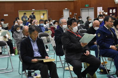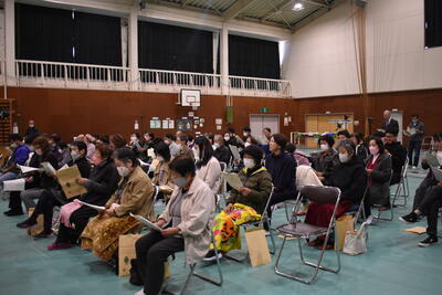 会場全員で「ふるさと」と「校歌」を歌いました。