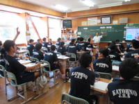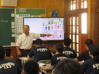 少子高齢化社会では、合計特殊出生率の数字から見えてくること、漫画「サザエさん」家族を例に、核家族世帯と三世代同居世帯について理解させていました。