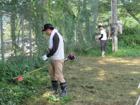 また、草刈り機を持参していただいた方には、校庭や体育館周辺、校舎裏等の草刈りをしていただきました。