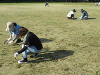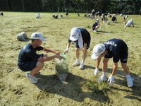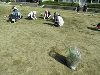約1時間、保護者の方々と生徒が一緒に、校庭の除草作業を行いました。