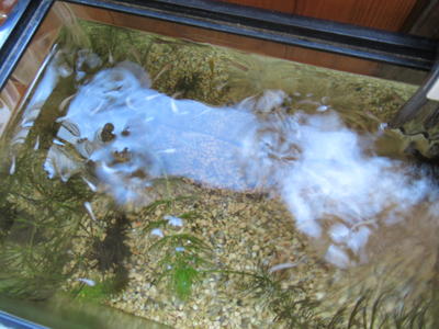 2019年9月10日 09時00分3年生教室前の廊下に設置されているメダカの水槽ですが、死んでしまったりして数が少なくなっていました。