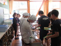 常磐学校給食共同調理場では、30人の調理員の方々で、4200食を作っているとのことで、給食が私たちの手元に届くまでには、生産者・加工業者・運送業者・小売業者・給食センター等々様々な人々の手を経て、時間と手間をかけて届けられます。