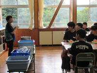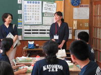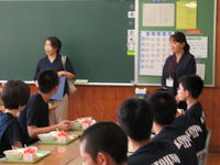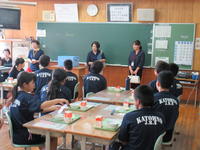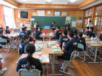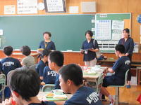 2019年9月10日 13時34分本日、常磐学校給食共同調理場の管理係長兼業務係長の横田三恵様、栄養教諭の鈴木洋子先生、調理員の川上絵里様が来校され、給食の配膳や食事・片付けの状況などをご覧になり、各学年で子どもたちにお話しをいただきました。