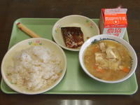 給食メニュー → 麦ごはん 牛乳 さばのみそ煮 呉汁 チーズかまぼこ