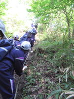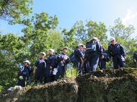 実際に地域の史跡を訪れ、それに関する歴史を知ることで、地域に対する理解を深め、自分たちの郷土遠野町への愛着を持つことを目的に、1年生は毎年、八潮見城登城を実施しています。