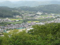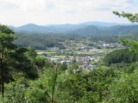 *上遠野城)(八潮見城)跡の表示板と、城跡からの眺め(遠野町が一望に、遠く海も見えました)