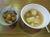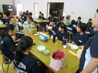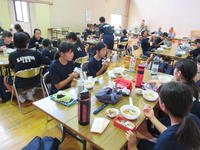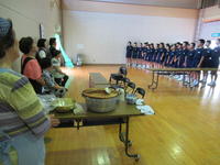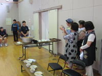 *公民館で、婦人会の方々が作った郷土料理(すいとん・ジャガイモの味噌煮)を食べながらの交流