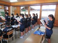 男女別に、全体でと、繰り返し歌っています。担当教師から、歌う前の姿勢について声がかかっています。