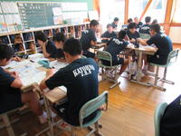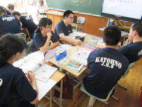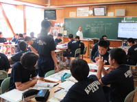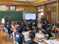 黒板に発表された内容をまとめた後、「あってよい」に共通していることは?、「あってよい」と「あってはいけない」に意見が分かれている項目について、それぞれ判断した理由は?・・と担当教師が発問し、各班の代表生徒が答えていました。