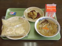 給食メニュー → 塩ラーメン 牛乳 さつま芋の甘煮 チーズ